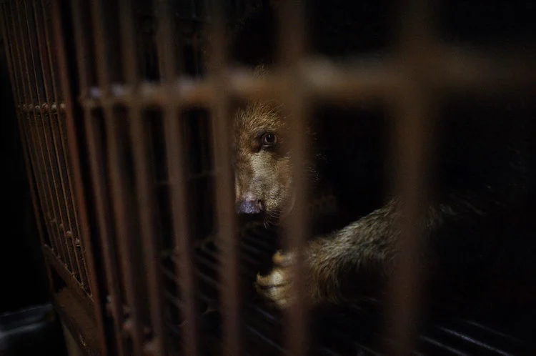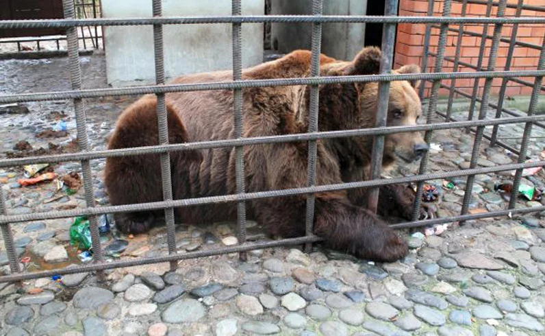 Here's one of two bears trapped in a shitty cage in Russia as 'restaurant entertainment' where he was fed beer and cake by not so helpful visitors...