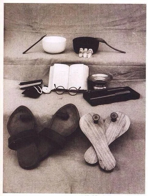 Me? I'm still working on a picture of my possessions that amounts to less than this one from Gandhi. Hopefully, when I die, I will have had to hand the keys to my car in already - or maybe I could spread my belongings out on the bonnet in a grand overblown display of irony.